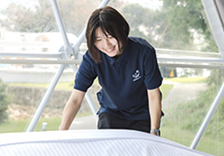 - 昔から人とコミュニケーションをとることが好きで、接客業に興味を持っていたため、ホテル業界で働くことを考えていました。実際に当施設を見学した際、スタッフの皆さんがイキイキと働いている姿を見て、「自分もここで一緒に頑張りたい」と思い、入社を決めました。