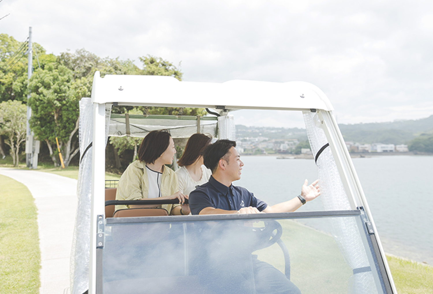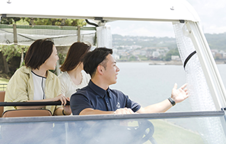 カートでお客様をテントまでご案内。